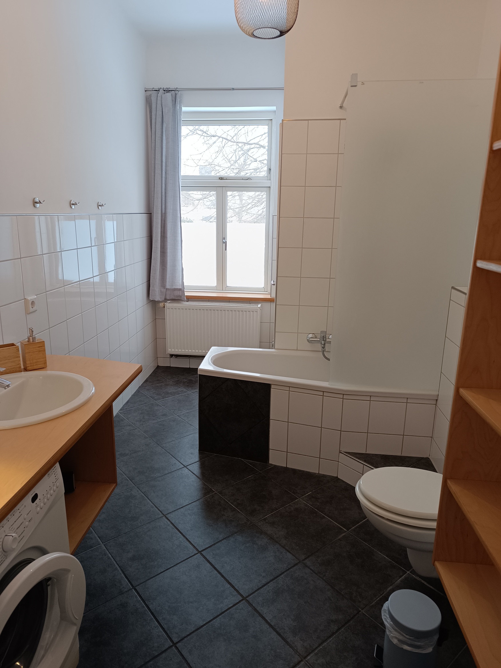 - 1 Bad mit Duschwanne, WC und Waschmaschine